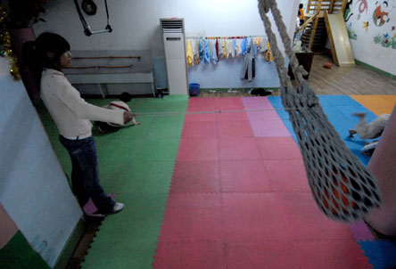 园长毕小敏告诉记者,她和另一名母亲建立这所学校,是因为她们的孩子就是自闭症患者,现在正在幼儿园接受培训。目前,在这所幼儿园,一共有12位老师,其中有8位专业老师,是毕小敏专门前往江苏请来的,另外4位,则是毕小敏从青岛请来培训老师,经过3个月的理论培训和亲身实践,并最终通过考核合格后上岗的。