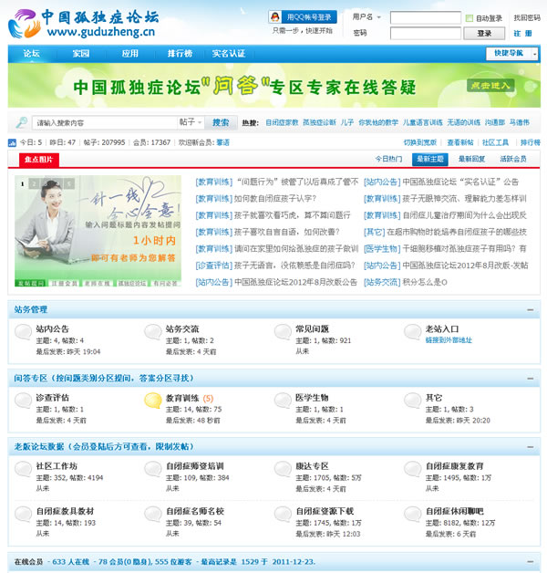 孤独症论坛(www.guduzheng.cn)改版后首页展示