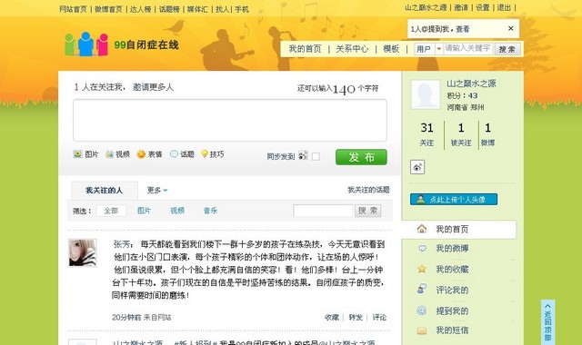 “99自闭症在线”网络志愿者联盟现向全社会招募“微博志愿者”,通过微博让孤独症患者和行业与全社会乃至全世界紧密的联系在一起,让世界一颗心,共创和谐社会。
